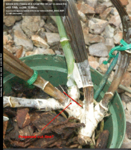 So, here I was with a rapidly declining orchid on a Sunday morning. I’ve had scientific experience dealing with tissue culture from my botany class in college in the 1970s when I propagated some cymbidium meristematic tissue. So I consulted with ChatGPT and it was agreed swift action needed to be taken or the plant might succumb by the next day. There was no waiting to hear from the vendor.