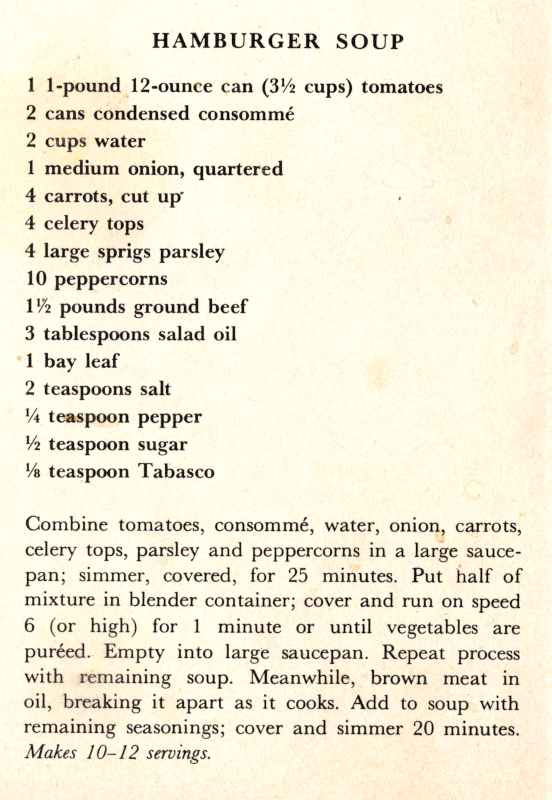 and therein was the only recipe that my mother thought worthy: Hamburger Soup.