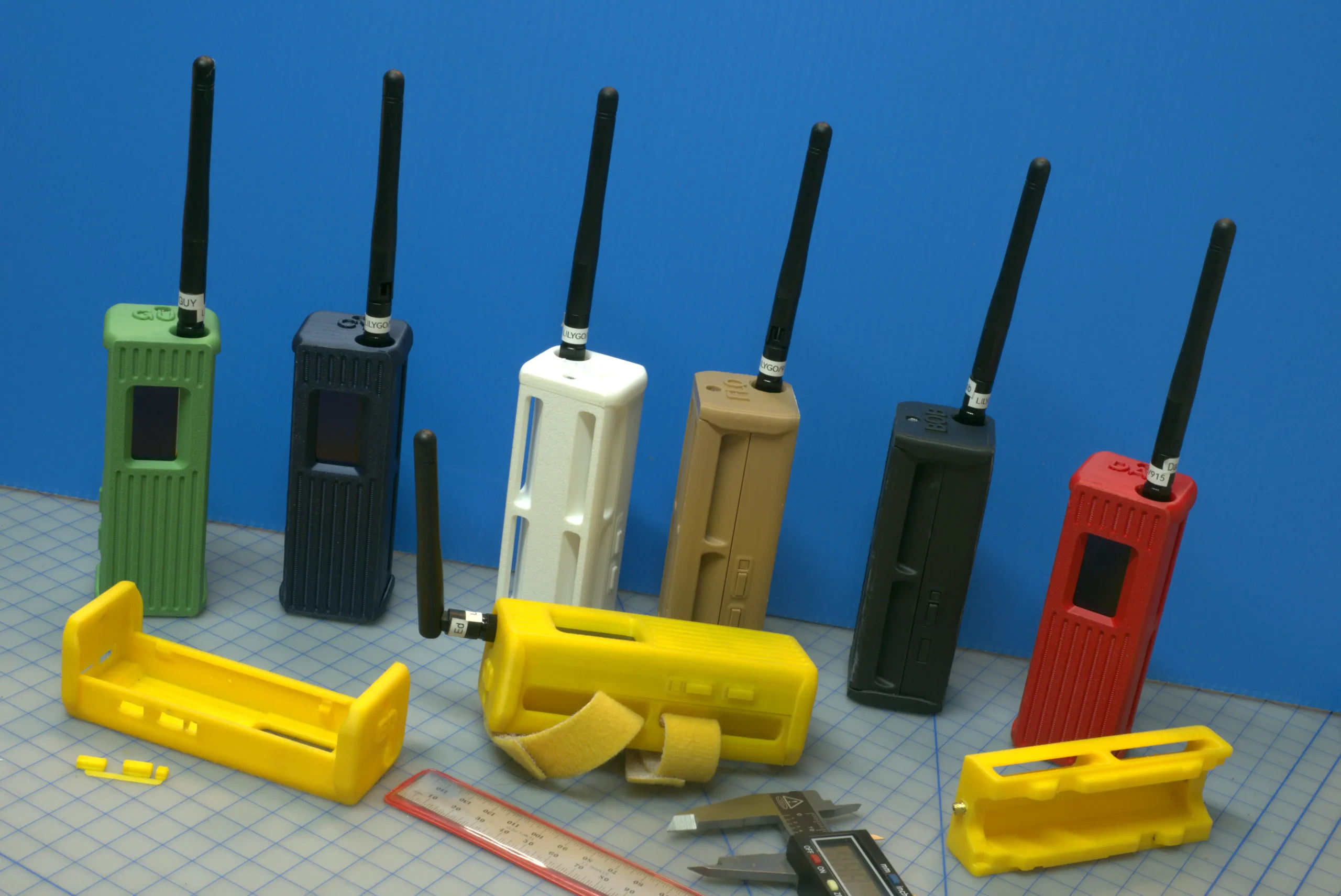 (Yes—there are multiple units, color-coded and named AMY -> GUY. This is deliberate to allow simultaneous multi-receiver comparisons for a study of Reticulum.)